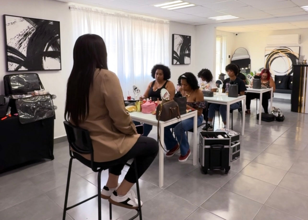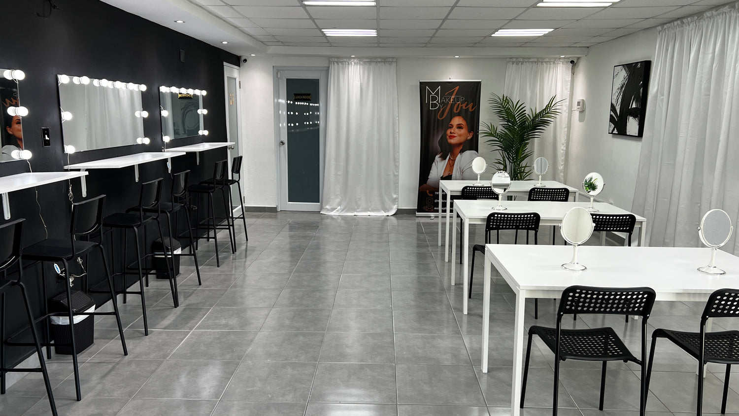 En Makeup by Jou The Studio, ubicado en el pueblo de Loíza, tienes un espacio cómodo para tus clientes y empleados. El salón admite hasta 18 participantes y ya está equipado con mesas y sillas en un ambiente profesional.