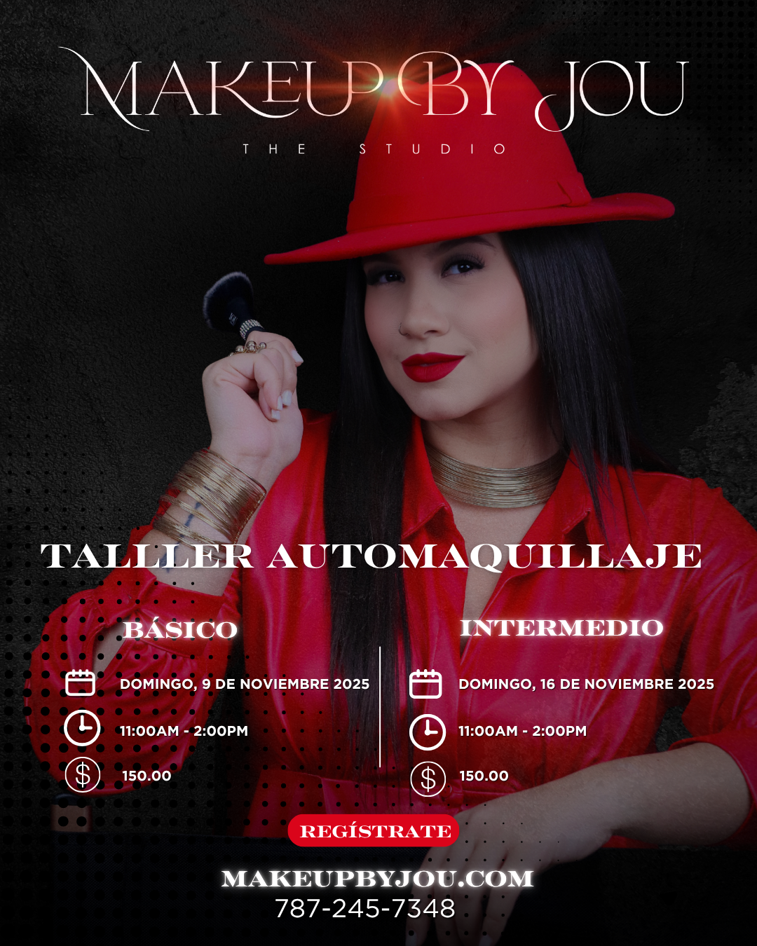 El taller se ofrecerรก presencialmente en MAKEUP BY JOU THE STUDIO en Loรญza.